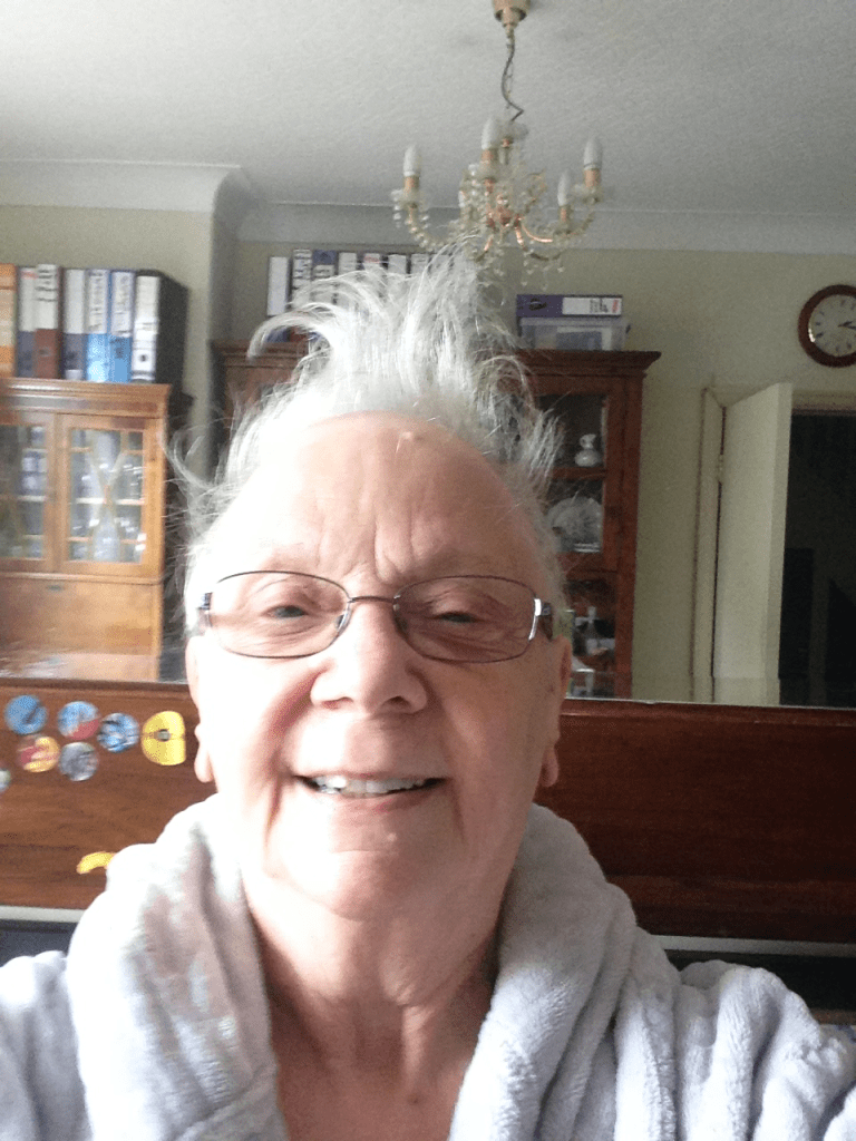 My diagnosis came as a surprise. I had not experienced much physical illness during my life. I was active, dancing and a healthy 70 year old. I had danced in Jerome Bel’s GALA on the main stage at Sadler’s Wells in November 2016 and had a successful Viva for my DProf. Early in 2017 I felt a tiny ‘splinter‘ that I thought was embedded in one of my ribs. It did not feel like a lump. I could get my finger round it a bit, so it thought it could not be in a rib. I went to the doctor. Luckily, he sent me to the hospital and two weeks later I had tests and an operation and informed I had Triple Negative Breast Cancer (TNBC). This is a virulent cancer that cannot be treated with hormonal medication. A second operation confirmed the cancer had not spread into my lymph glands. It was fortunate that I had gone to the doctor as soon as I thought something was wrong and my doctor had not delayed sending me to the hospital to have it checked out. Chemotherapy followed and then radiotherapy. I did have a few negative side effects including feeling tired, emotional days and not sleeping well. It took time for my incision to heal and this delayed starting chemo. I enjoyed all the different hair styles during and after chemo and radiotherapy.